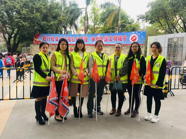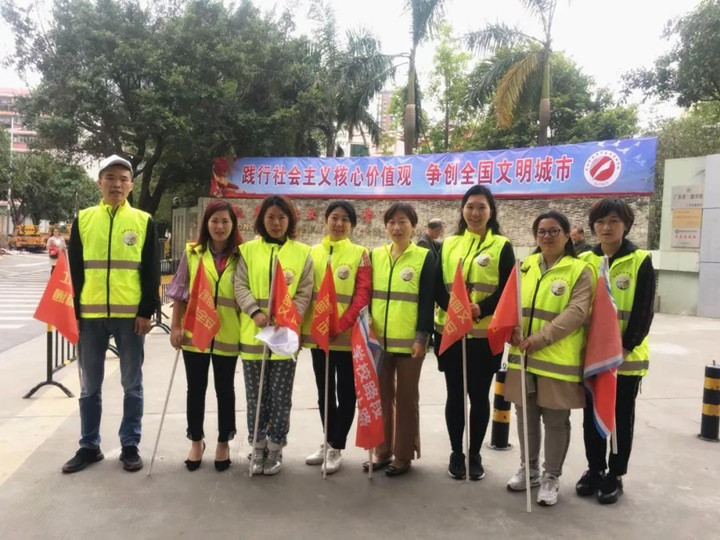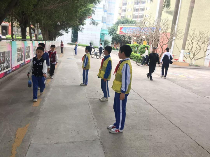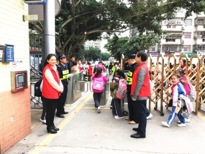2018年秋季學期,無論刮風下雨,每天上下學都有義工家長值日崗堅守在學校門口,負責交通疏導、引導學生井然有序進入校園等工作。義工家長把安全放在了第一位,肩擔安全重任,各義工家長也能獨擋一面,共同在成為建設平安校園,保師生的安全,那一道道旗、一句句暖心安全提醒,都在涌動著我們每一個人的心揮,成為了我們學校一道亮麗的風景線。