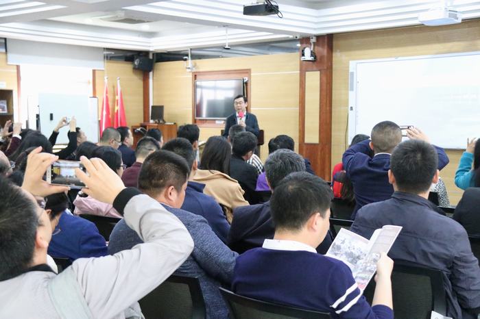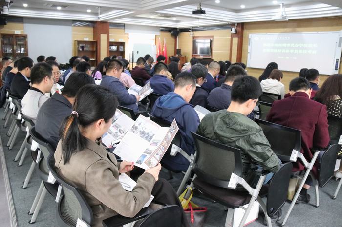 參觀結(jié)束,我校卜祥林校長對考察團(tuán)成員作了題為《辦優(yōu)質(zhì)高端名校,育多元精英人才》的學(xué)校建設(shè)與發(fā)展講座。講座中,卜校長重點介紹了“美好教育”辦學(xué)理念、“五星十最”“六藝十能”德育及能力課程、“一體兩翼”(國際理解、藝體、創(chuàng)客)特色建設(shè)成果等方面的情況。卜校長還用我校中高考取得的良好成績,以及我校參加區(qū)調(diào)考六個年級全部位列民辦學(xué)校首位的良好成績,向來賓剖析了“小班化”教學(xué)改革對教學(xué)質(zhì)量提升的良好推動作用,同時向來賓分析了民辦學(xué)校走“優(yōu)質(zhì)、高端”辦學(xué)之路的必要性和緊迫性。卜校的講座,理念先進(jìn)、案例充實,受到了來賓的高度贊同,大家紛紛對重點內(nèi)容進(jìn)行拍照留存。