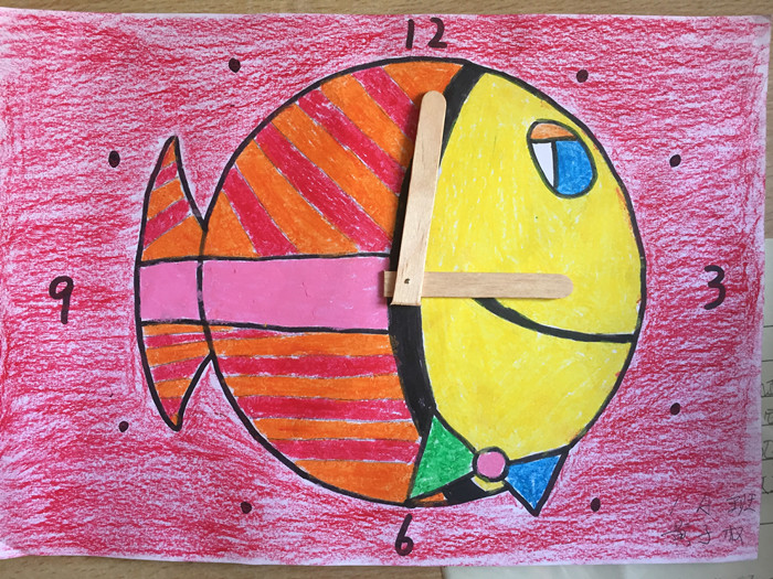 一年級:創意鐘表畫,老師們啟發學生以鐘表為基本素材,以繪畫的方式評選出了學生優秀創意鐘表作品。