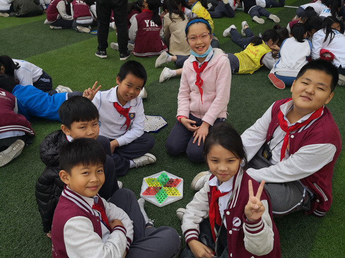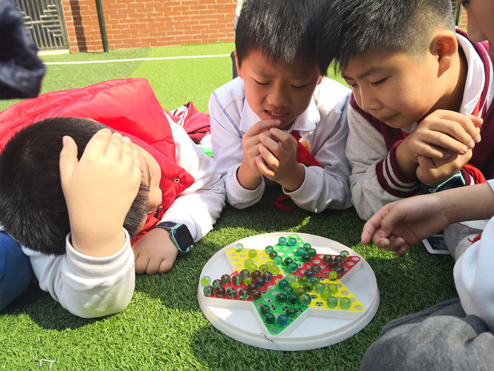 四年級:跳棋挑戰賽,6個人一起跳跳棋,你看我們多認真!
