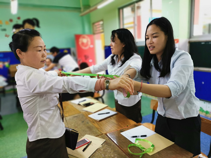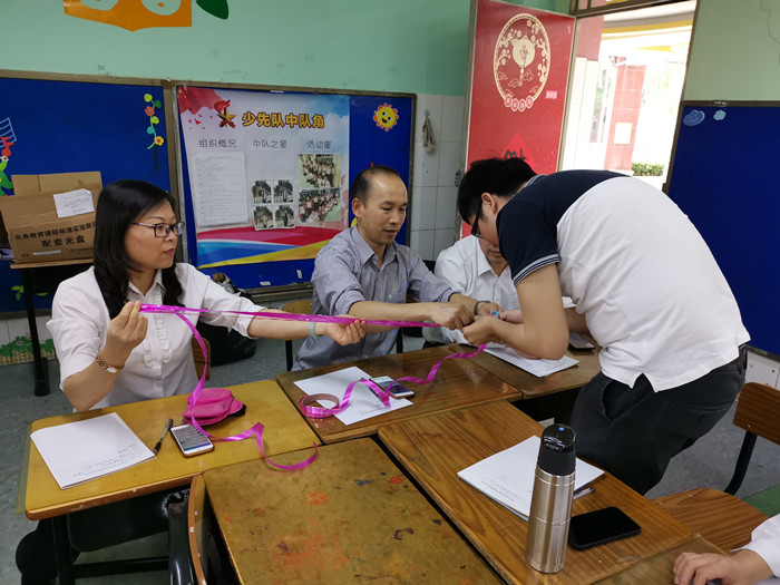 時間: 2019-04-16 作者:龍華中英文實驗學校 閱讀次數: 2845“任務驅動學習,落實核心素養”是本學期小學部數學課堂教學模式探究的聚焦點。無論是教研培訓,還是教研課研討,都以此為目標,積極尋找突破。常規培訓將工作布置到實處,游戲體驗——美麗的紅絲帶,讓老師們感受小組合作帶來的快樂。