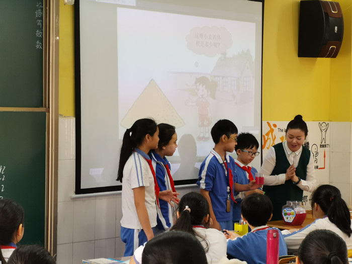 2.科學小實驗。袁老師和葉老師帶我們去探討“圓錐的體積”,“實踐是檢驗真理的唯一標準”,讓孩子們經歷體驗,建立從抽象到具體的思維過程。