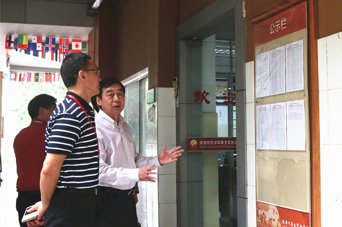 時間: 2019-04-22 作者:龍華中英文實驗學校 閱讀次數: 33502019年4月19日,深圳市龍華中英文實驗學校掛牌責任督學、龍華中學包強平校長,第六責任區殷木森、李紹金教研員督學,第六責任區詹雪光督學助理等一行4人,到校進行了四月督導檢查。本次督導檢查的重點是“校務管理和制度執行情況”。