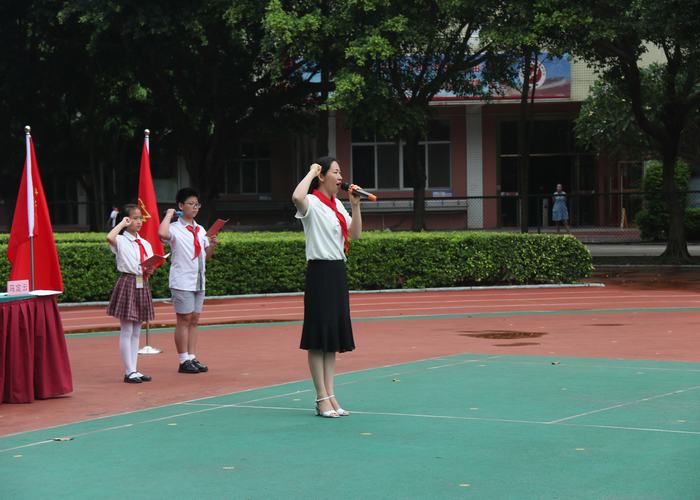 小學(xué)部負(fù)責(zé)人張丹同志為新建中隊(duì)授中隊(duì)旗