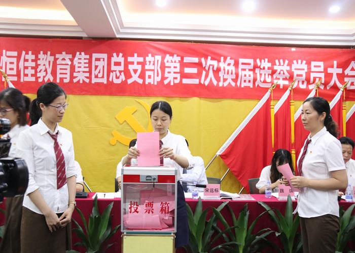 本次換屆選舉工作嚴(yán)格按照《中國(guó)共產(chǎn)黨章程》《中國(guó)共產(chǎn)黨基層組織選舉工作暫行條例》以及有關(guān)規(guī)定進(jìn)行。在雄壯的國(guó)歌聲中,集團(tuán)黨總支部換屆選舉大會(huì)正式拉開序幕。會(huì)議嚴(yán)格按照各項(xiàng)議程進(jìn)行。首先由龍華區(qū)委教育工委辦魯慶主任宣讀《中共深圳市龍華區(qū)委教育工作委員會(huì)關(guān)于同意深圳市遠(yuǎn)恒佳教育集團(tuán)總支部委員候選人預(yù)備人選的批復(fù)》文件。