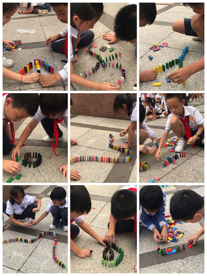在有限時間內,一塊塊多米諾骨牌怎么擺,才能完美達到“牽一發而動全身”的效果呢?這是三年級孩子比賽時腦海里的所思所想。讓孩子們提前了解科學道理——蝴蝶效應的原理。