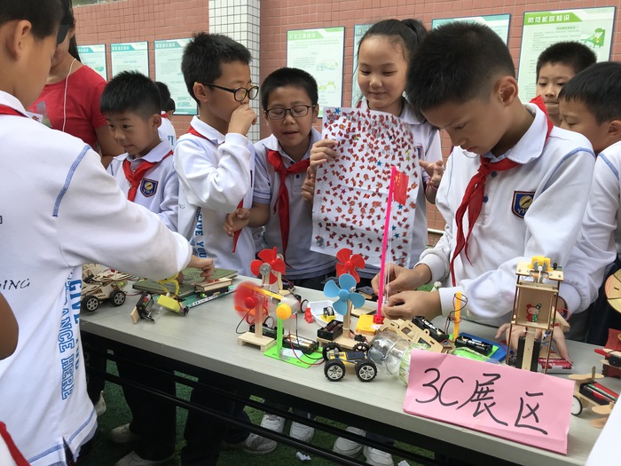 孩子們制作出的作品有的是小吸塵器;有的是小臺燈;有的是簡易風向風速儀;還有的是創意天氣報告箱......花樣百出,百家爭鳴。