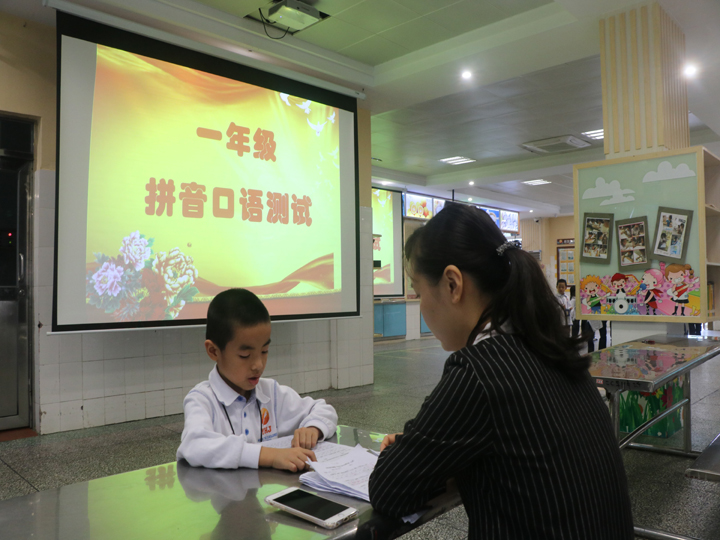 2016年11月22日上午第二節課,我校對一年級的學生進行拼音測試,由本校語文組老師組成監考隊伍,采取一對一的檢測模式,充分檢測了學生對于聲母,韻母,整體認讀音節,字詞,句子的認讀掌握情況。