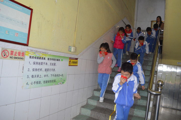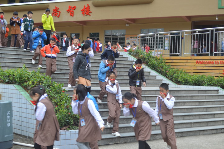 只見各樓梯口疏導人員、班主任到達指定崗位組織學生,捂著口鼻、彎著身子、緊貼墻壁,按指定的路線緊張有序地逃離了“火災現場”,到達安全場地集合,全體師生的撤離僅用了2分30秒。撤離結束后,經過清點,52個班級的2500余名學生安全撤離到教學樓前的足球場、籃球場,疏散演練取得了圓滿成功。整個疏散演練過程迅速、安全、鎮靜,組織紀律嚴密,秩序有條不紊。