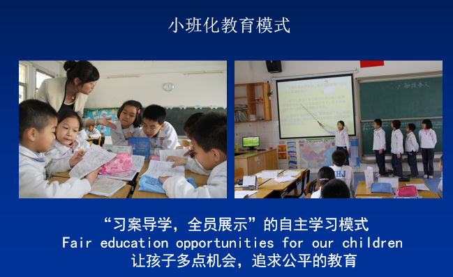 學校實施小班授課模式,每班不超30人,創新實施“習案導學,全員展示”的自主課堂教學模式,最大限度地把學習的主動權還給學生;小班實行雙班主任制,全程關注學生的學習狀態,作業實行面批,及時反饋學生的學習成果;實行分層走班和小組個性輔導。公平、個性、精致的小班教育已成為學校的核心教育優勢。