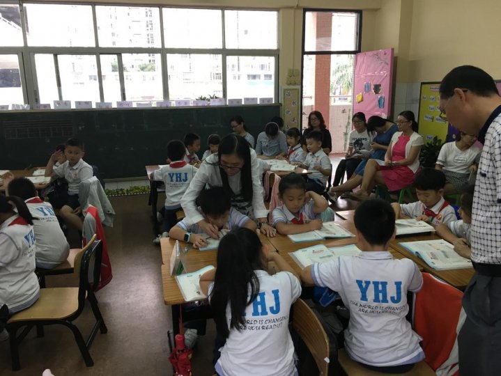 2016年10月18日,李松蓢小學(xué)朱先明老師在五(2)班為我們小學(xué)部英語組老師上了一節(jié)精彩的示范課,老師們都表示受益匪淺。從課堂開始的融洽師生關(guān)系、地道的英語語音、再加上課上朱老師的目標(biāo)明確、具體、層次分明,再從關(guān)注學(xué)生的學(xué)習(xí)策略,都讓老師們佩服這位專家型的老教師的“以學(xué)生快樂學(xué)英語出發(fā)”精彩示范。