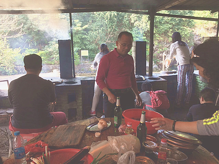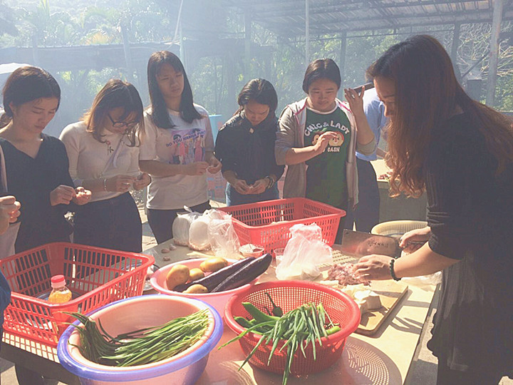 中午時分,大家來到了野炊基地。由于事先大家進行了分組,所以剛到目的地大家忙碌起來,抓雞的抓雞,捉魚的捉魚,燒火的燒火,洗菜的洗菜......大家忙得不意樂呼。在大家齊心協力的協作下,一個小時后各組都奉上了美味的套餐。