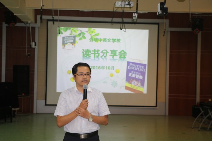 2016年10月14日下午5點,在公明中英文學校報告廳,《正面教育》讀書分享會正式開始。郭蘇陳、周琴、楊柳靜和徐敏紅等四位教師結合教育實踐,與全體教師分享了正面教育案例。全體教師在靜靜的聆聽中感受著正面教育帶來的力量。