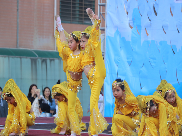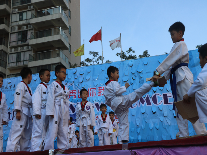 整場展示活動以“美好教育,幸福校園”為主線,分為美好時光快樂同行、美好校園幸福同享、美好教育精彩同繪三個篇章。一曲《we will rock you》打擊樂合奏拉開演出序幕,定音鼓、架子鼓等打擊樂器齊上陣,旋律鏗鏘、節奏震撼、氣勢恢宏,配上35個小主持人的出場熱舞,全場隨之沸騰。舞蹈、唱歌、器樂、武術、跆拳道等社團節目相繼亮相,精彩紛呈,全面展示了學生一學期來在藝術方面的學習成果。