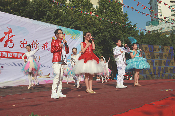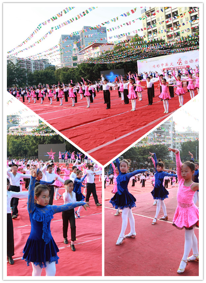 本屆“素質教育成果展示”活動分“開場祝語、喜迎新年、情滿校園、夢圓美好、結尾”五個章節進行,表演展示內容有舞蹈、器樂、英語SHOW、拉丁舞、健美操、歌曲演唱、英語課本劇、童話劇等內容,集中展現我校本學期開展的“師生大課間”、“三?三?四綜合素質培養”、“六藝十能培養”、“音樂沙龍”、“英語藝術節”、“學生社團”等師生活動開展和素質培養的成果。