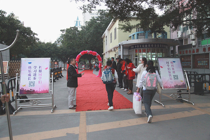 2017年02月13日,是新學期學生入學的美好日子。深圳市龍華中英文實驗學校干部師生代表,在校門口舉行了一場別開生面的新學期學生入學歡迎禮。受到了第一天來校上班上學的師生、送孩子入學的家長的廣泛好評,教師家長紛紛發微信、QQ相冊曬照片、視頻,紛紛稱贊龍華中英文新學期的新風尚。