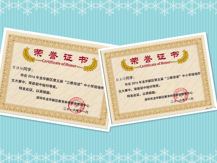 深圳市龍華中英文實驗學校從2012年起,開展“小班化、個性化、國際化”辦學特色研究與建設,經過多年的實踐與探索,小班教學特色鮮明,小班教學效果顯著,小班學生成績優秀,得到了上級主管部門、學生、家長和社會的廣泛認可。學校被龍華區授予“教育國際化特色學校”、中高考先進單位等榮譽稱號。