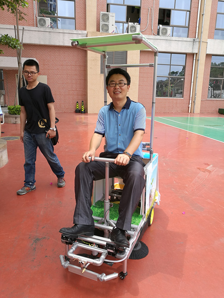 因?yàn)辇埲A中英文實(shí)驗(yàn)學(xué)校是深圳大學(xué)授牌的《FEG智能無人車》創(chuàng)客實(shí)踐基地,作品制作過程中,運(yùn)用的工程結(jié)構(gòu)、3D設(shè)計(jì)、Arduino編程、激光切割等技術(shù)得到了深圳大學(xué)的相關(guān)老師與技術(shù)指導(dǎo),該車可以支持有人駕駛及手機(jī)遠(yuǎn)程無人控制等。《校園清掃車》可以實(shí)現(xiàn)校園落葉垃圾清掃、室內(nèi)球場(chǎng)的托地清潔、足球場(chǎng)草坪修剪、太陽能充電等功能。是一項(xiàng)節(jié)能、環(huán)保、多功能的創(chuàng)客作品。