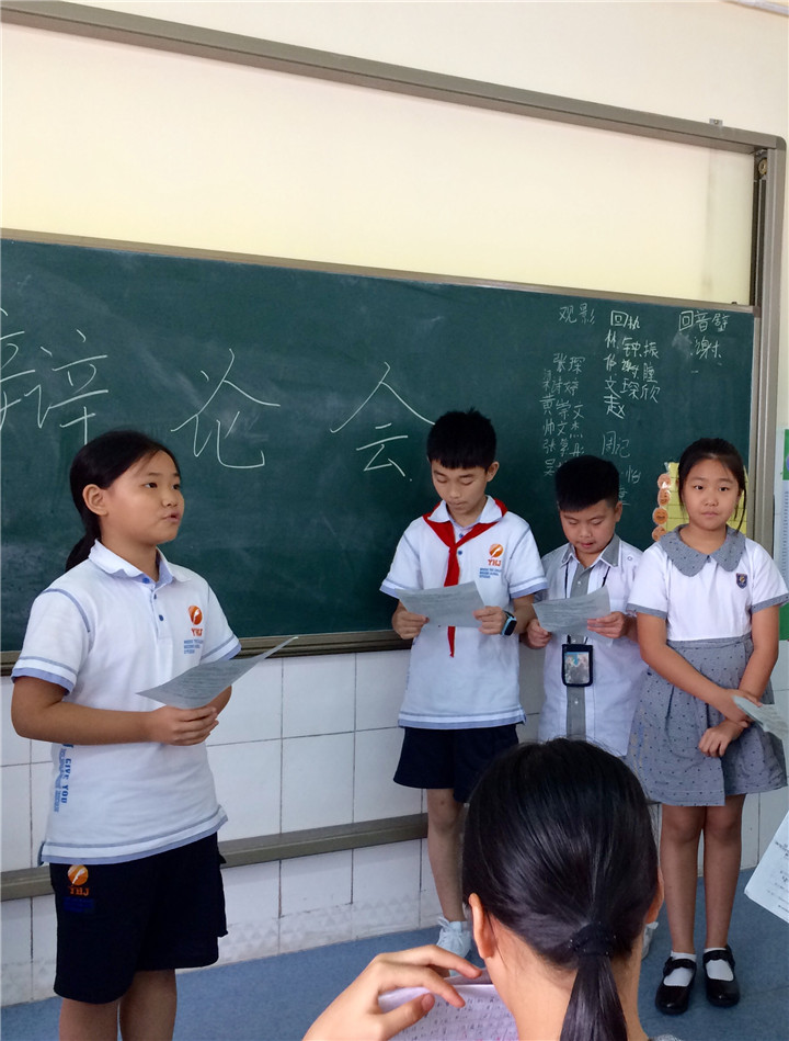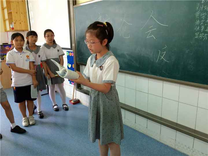 時間: 2017-05-17 作者:yuanhengjia 閱讀次數(shù): 2460清脆的上課鈴打響了,一場關(guān)于“上網(wǎng)的利與弊”辨論會在緊張、激烈的氣氛中開始了。同學(xué)們先以小組為單位進(jìn)行討論,每組選出兩位代表,分別代表“正方”和“反方”,就位于黑板左右兩個陣營,其他同學(xué)就是臺下的小觀眾。徐徐老師兼主持人一聲令下,五(A)班辯論會正式開始了。