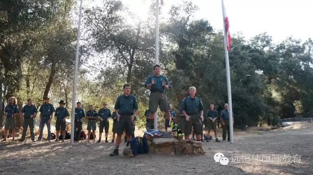 升旗儀式,是每天早上的必備項目。美國童子軍營地里的升旗儀式,并沒有想象的那么嚴肅和一板一眼。反而在升旗開始前,是教官們的所謂“喊號”運動。每個教官跳上中央講臺向大家問好,并且發布一下關于今天或未來的活動信息,一些突如其來的想法,靈感,甚至冷笑話,在冷風瑟瑟的早晨帶來了一絲暖意。