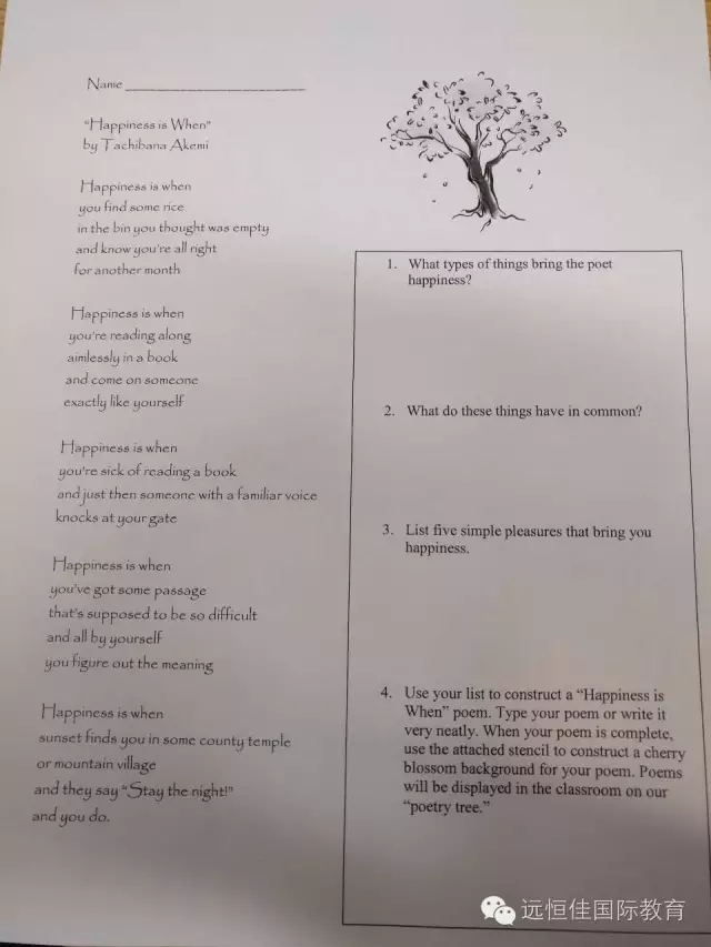Southlands的課程安排也進(jìn)一步的深入。低年級的同學(xué)上課伊始,老師為同學(xué)們精心挑選了一些簡單的美國詩詞。通過對詩詞的學(xué)習(xí),了解一些英文中的隱喻,借喻和比擬的表達(dá)方式。同時,同學(xué)們還能學(xué)習(xí)一些關(guān)于詩詞寫作的結(jié)構(gòu),分段,以及一些寫作規(guī)則。