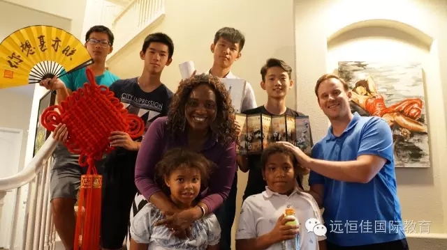 在學(xué)校學(xué)習(xí)的兩周時間里,同學(xué)們的衣食住行都由美國的寄宿家庭的爸爸媽媽精心照顧,同學(xué)們鍛煉了英語,了解了美國文化。在準(zhǔn)備進(jìn)入營地的前一天晚上,同學(xué)們依依不舍地和自己的寄宿家庭告別,并送上了他們?yōu)榧乃藜彝ゾ臏?zhǔn)備的具有中國特色的禮物。