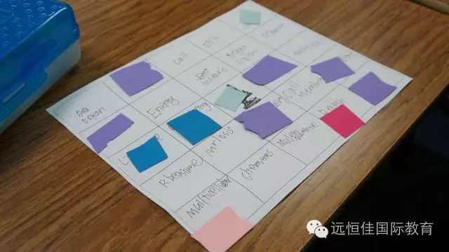每記住一個單詞就可以把詞蓋住,最先連成五個的同學就獲勝,并獲得老師的小獎品