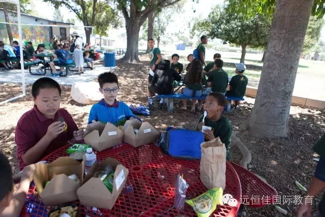 學校上課注重學術的同時,也十分注重學生們體育的素養和體能的培養,午間的美國學校沒有午休時間,午飯休息后,便開始了體育活動時間。在這里,同學們充分的享受加州的陽光。