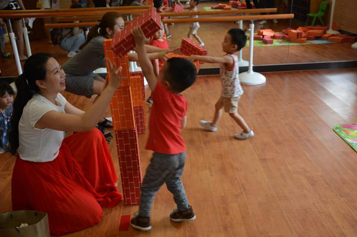 為了給寶寶們獲得禮品,粑粑麻麻們都使出了渾身解數(shù),在快樂中合作,共同成長!