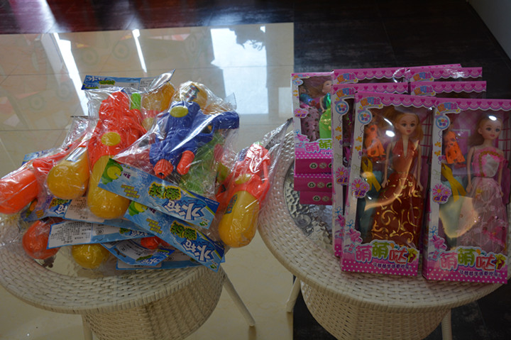 美食分享過后,接下來是寶寶們最期待的環(huán)節(jié),領(lǐng)取六一禮物啦!哇哦·~~有我最喜歡的芭比娃娃還有水槍呦!