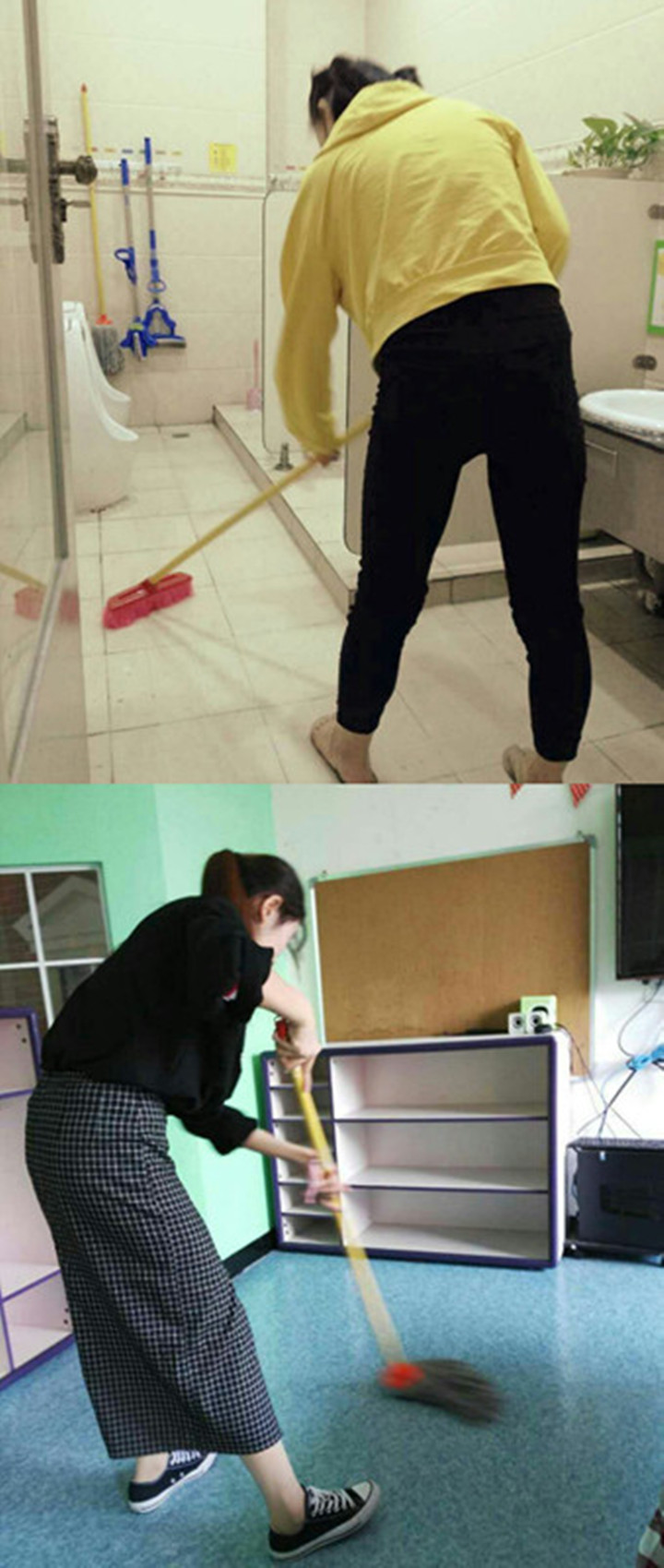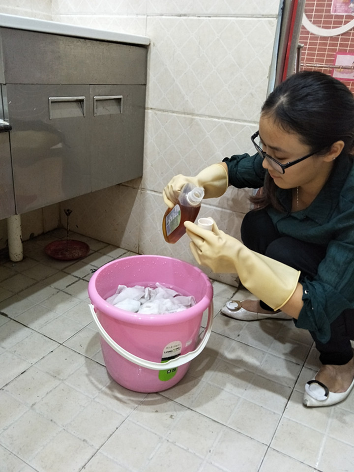 5、對于教室的地板、公共區域的地板、餐廳的地板先用消毒水拖,再用清水拖。