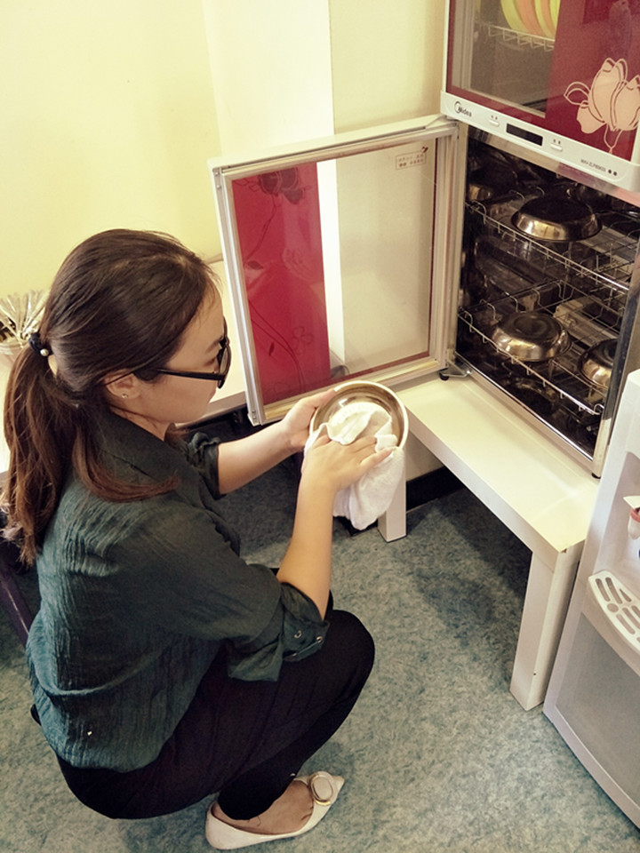 6、孩子進餐的桌子飯前消毒飯后清干凈;孩子的餐具,每餐使用后都會清洗干凈再放入消毒柜消毒。