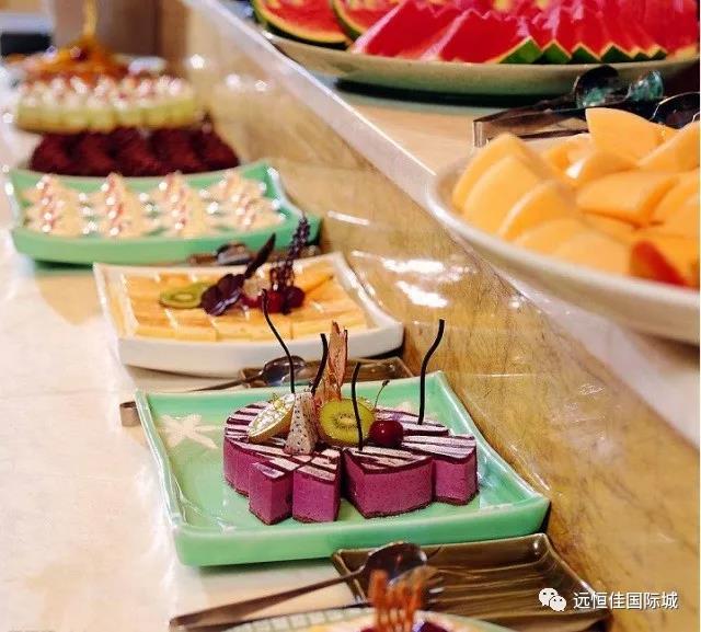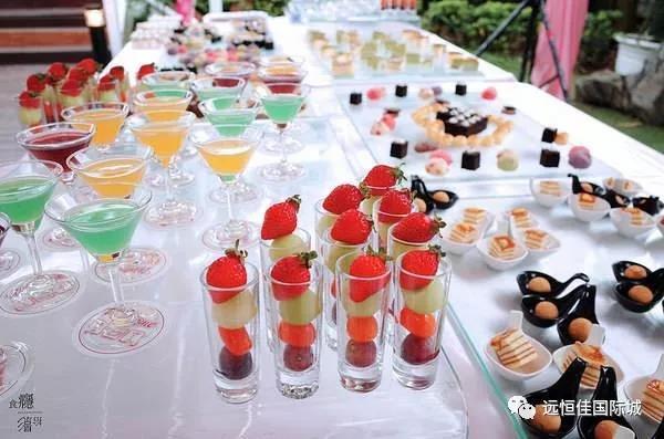自助點心 水果蔬菜沙拉、蛋糕餅干、果汁飲料、零食甜點等。