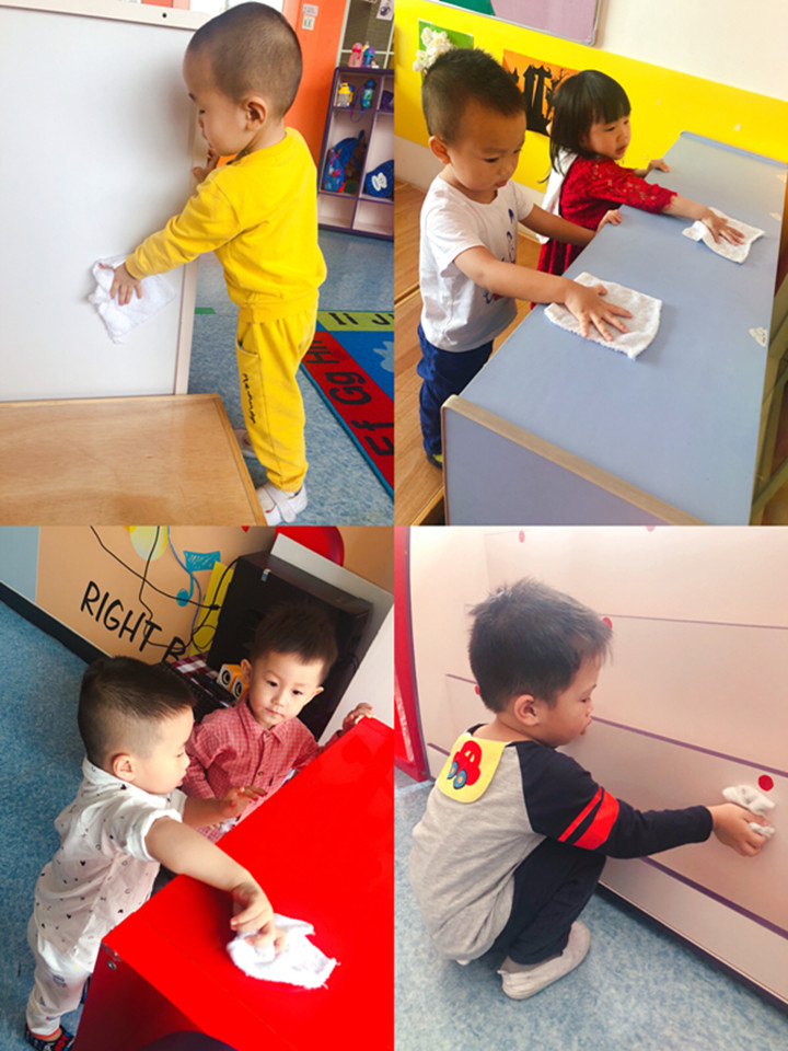 從小培養(yǎng)孩子自己的事情自己做,我們不僅僅培養(yǎng)自我服務(wù)的意識(shí),還要培養(yǎng)服務(wù)他人的意識(shí)。結(jié)合五一勞動(dòng)節(jié),我們的孩子體驗(yàn)了勞動(dòng)帶來(lái)的快樂(lè)。請(qǐng)家長(zhǎng)在家里也鼓勵(lì)寶寶做些力所能及的事情哦!