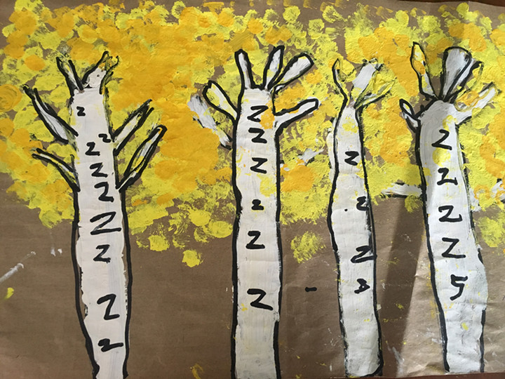 圖二是來自創(chuàng)意美術(shù)C班舒詣然的作品《會唱歌的樹》,你是否感覺到了呢?