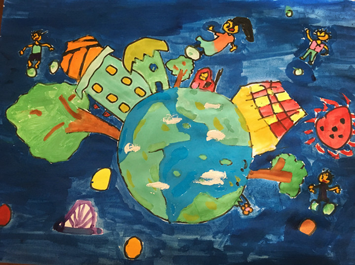 圖三是來自創(chuàng)意美術(shù)A班吳從政的作品《地球上的一家人》,小小年級就很有環(huán)保意識,值得表揚哦~