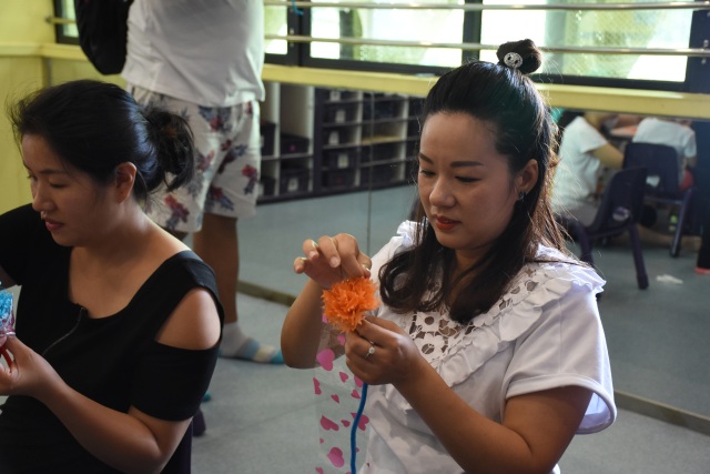 孩子們和媽媽們一起找到有秘密的氣球,并把氣球里的秘密找出來,大聲的念出來!