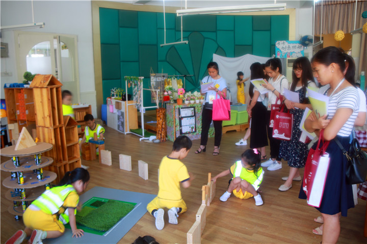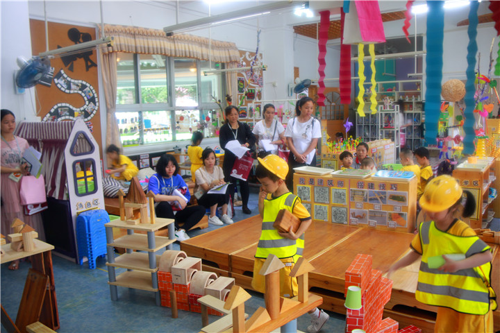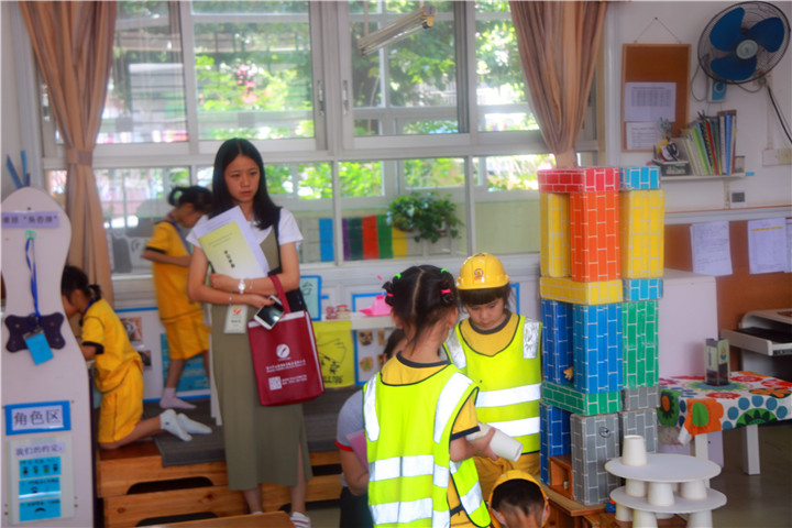 深圳市龍華中英文實驗學校幼兒園在此次跟崗全園同時開放,跟崗成員在跟崗之前組成三大組分別進入小、中、大班的建構區進行觀摩、學習。在觀摩中間接引發思考,帶著問題組內討論,組與組之間交流,發表自己的想法與觀點,直接獲取經驗!