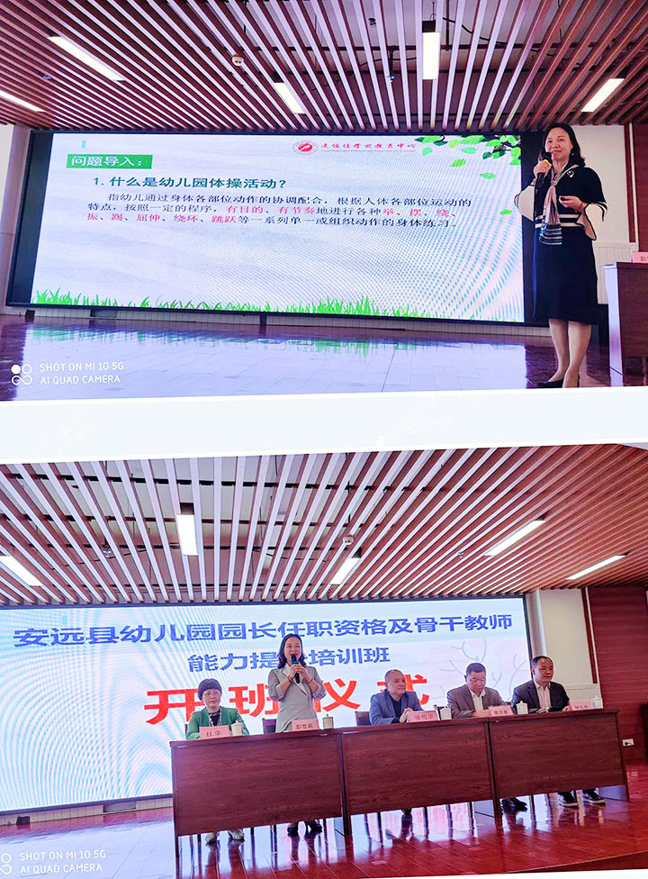 安遠縣教科體黨工委委員、教科體局副局長樓明華出席開班儀式并講話,就本次培訓提出明確的要求和希望。本次培訓旨在提高幼兒園園長和教師的師德素養,培養幼兒園園長和教師的教學意識和教學能力,提高自身的專業素質和教學質量。