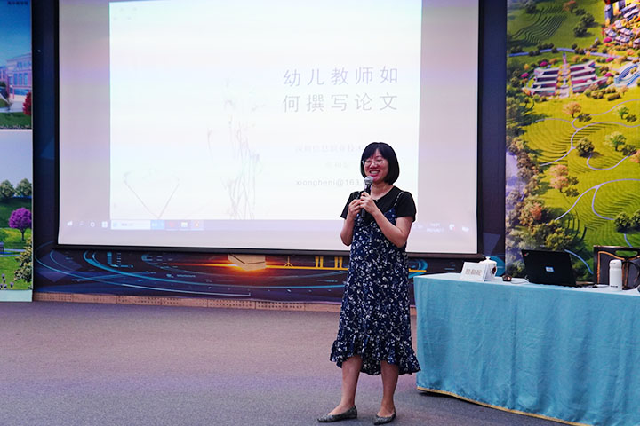 “行是知之始,知是行之成”,下午場我司邀請到了深圳信息職業(yè)技術(shù)學(xué)院講師,深圳市教育學(xué)會學(xué)前教育專業(yè)委員會第七屆理事熊和妮博士開展“幼兒園論文撰寫”專題培訓(xùn)。當(dāng)幼師遇上博士,又會擦出什么樣的火花呢?熊博士風(fēng)趣幽默的講座風(fēng)格,讓我們看到了不一樣的專家風(fēng)采,原來面對寫論文,無論是博士還是幼師經(jīng)歷的“心酸歷程”是一樣的。熊博士從論文標(biāo)題、摘要、關(guān)鍵詞、正文格式與技巧,以及參考文獻(xiàn)的作用等方面作了詳細(xì)生動的講解,提出題目避免寬泛,觀點要明確、語言要嚴(yán)謹(jǐn),還提到寫論文要注意程序,論文不是拼湊而成,而是要圍繞問題,解決問題。通過“選題策略”“研究方法”“寫作規(guī)范”“撰寫技巧”四個方面為老師們帶來了詳細(xì)的介紹,并列舉實例分享了很多實用的小妙招,如“雞蛋是怎么豎起來的”“磚頭有什么用”等鼓勵老師們?nèi)ビ^察、記錄和反思,并將這些轉(zhuǎn)換成文字,這些文字都可以成為很好的論文素材。