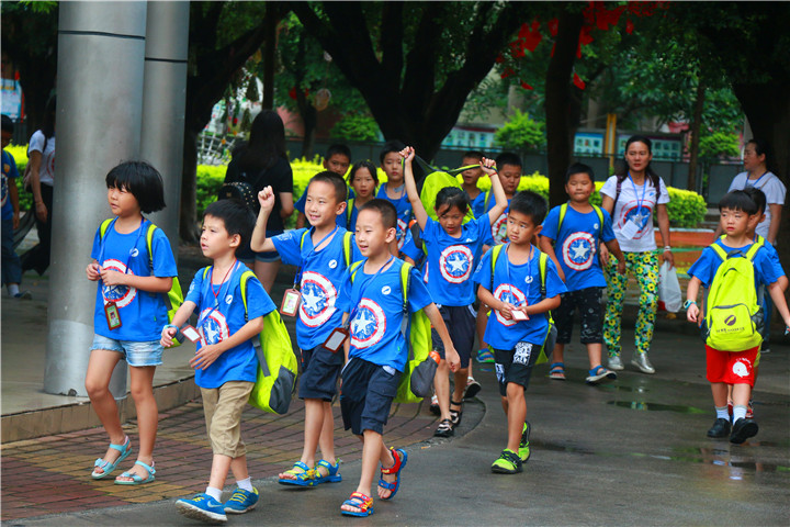 時間: 2017-07-17 作者:yuanhengjia 閱讀次數(shù): 28077月16日清晨,還在淅淅瀝瀝的下著小雨,第十四屆牛津?qū)崙?zhàn)英語夏令營的小營員們已經(jīng)背上了綠書包,身穿藍(lán)色營服,臉上掛著興奮而又歡樂的笑容準(zhǔn)備出發(fā)了,將要去往歡樂的發(fā)源地——深圳歡樂谷。雖然天公不作美,但無法阻止小營員們游玩的心情。