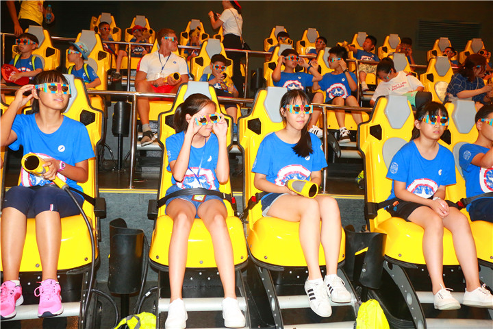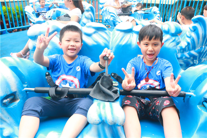 在一路的歡聲笑語中,小營員們乘坐著旅游大巴很快就來到了深圳歡樂谷,剛到園區(qū)門口,小營員們便被五彩繽紛又帶著童話感的城堡所震撼。走進(jìn)園區(qū),我們來到魔幻城堡,參與了其中的騎警訓(xùn)練營和浪花跳跳,體驗了騎警射擊的絕妙快感和隨音樂噴泉般潮起潮落的律動。隨后我們來到了颶風(fēng)灣——一個充滿濃郁加勒比海島風(fēng)情的廢墟小鎮(zhèn)上,感受颶風(fēng)和地震侵襲后的斑駁殘跡,滿目瘡痍。午餐后我們參與了颶風(fēng)要塞,這是一個國內(nèi)罕有的7D互動劇場,隨著劇情手執(zhí)機(jī)關(guān)槍參與拯救行動,再參與過后,小營員們臉上都洋溢著興奮的笑容,想要再來一次。之后我們來到了XD動感影院感受多維動感椅座帶來的極限之旅。最后我們分別在魔幻廣場和4維影院觀看《地道戰(zhàn)》和《末日崩塌》,生動地再現(xiàn)了當(dāng)年抗日戰(zhàn)爭波瀾壯闊的歷史畫卷和災(zāi)難來臨時世界崩滅的場景。