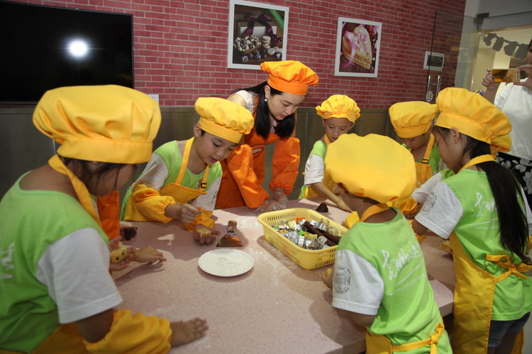 現場氣氛熱鬧、溫馨、融洽,空氣里有香甜的奶油味道,濃濃的生活氣息感染了在場的每一個人。爬行者班小營員們洗手后,戴上烘焙專用帽、系上黃色圍裙,仿佛就是一個個小糕點師,迅速融入這個歡樂天地。