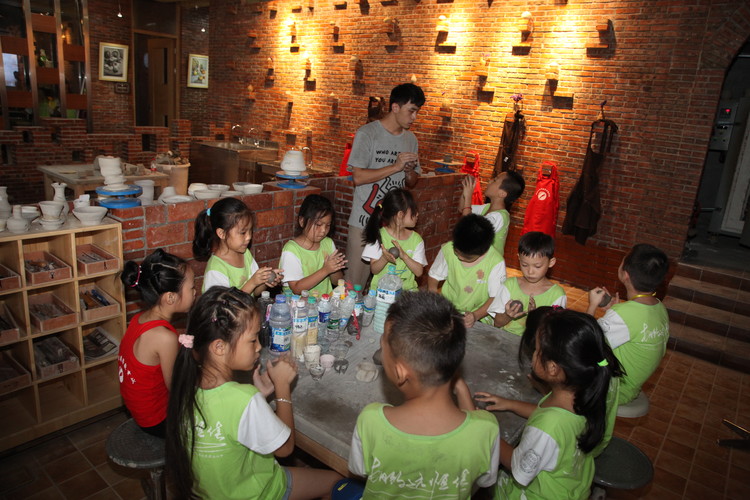 小精靈們在教師的指導下現場發揮,充分發揮想象力,先揉軟泥,再用拉坯機、轉盤、雕塑工具、扎針、鏟刀和修坯刀等十八般工具,開孔做造型、貼花修坯、上色,制作了各式各樣造型、富有創意的陶藝作品,并將學習成果---自己親手制作的作品帶回來留作紀念。
