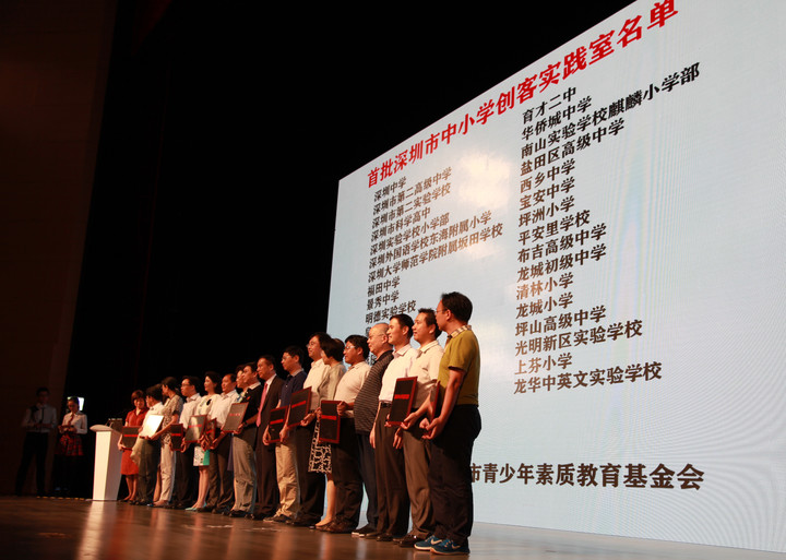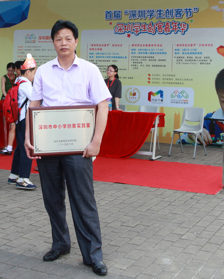 6月18日下午,深圳首屆學生創客節啟動儀式在市中小學藝術教育基地舉行,出席啟動儀式的領導有吳以環副市長、市教育局郭雨蓉局長、市教育局范坤副局長、香港教育局陳嘉琪副秘書長,以及深圳市中小學師生和香港學校代表1000多人出席。學校戴桓標校長參加了首批32個中小學創客實踐室的授牌儀式,并參觀了設在市中小學藝術教育基地和市第二高級中學體育館主會場的22個創客作品展區,共3000多件作品,感受學生們的創作思維及能力。首批授牌的實踐室將得到柴火創客空間和深圳市青少年素質教育基金會的支持,為學生創新提供平臺和經費支持。