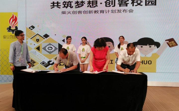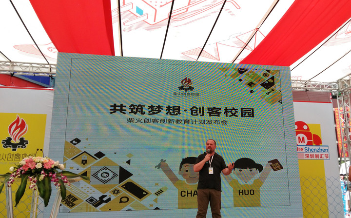 6月19日在深圳市首屆國際創客周以“共筑夢想.創客校園”為主題,柴火創客創新教育計劃發布會上學校創客實驗室負責人劉翔飛代表學校參加了簽約儀式,柴火創新教育計劃簽約發布會也同時受到了深圳市教育局以及深圳市科技創新委員會的高度關注及支持,本次活動還邀請到首都公益慈善聯合會常務理事長朱爾澄、深圳市教育科學院院長葉文梓、Arduino創始人Massimo Banzi,深圳實驗學校小學部林景武老師和柴火創客空間負責人劉得志先生作為致辭嘉賓出席。以及全國40多所中小學創客實踐室會員學校的領導老師連同逾40位家長和學生,也將共同見證這個意義深遠的發布會。