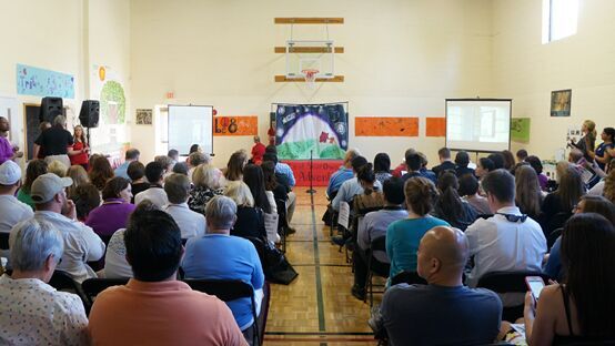 宋總、麥總與彩虹堡高層于Godwin高中門口留念
