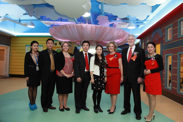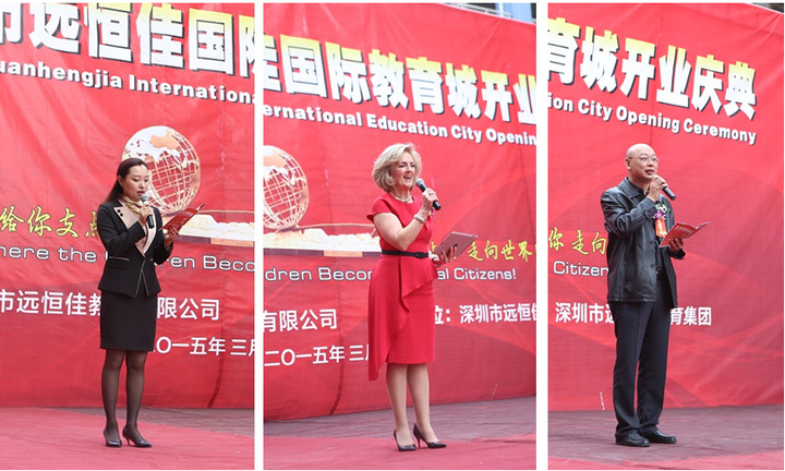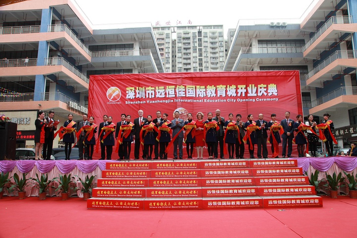 遠恒佳國際教育城開業慶典在鑼鼓喧天、鼓號齊鳴的熱烈氣氛中展開。首先,主持慶典的遠恒佳教育集團董事長助理程琳娜女士、國際教育城副校長Ellyson先生介紹嘉賓,600位嘉賓、家長朋友及孩子們到場參加出席本次慶典,并由遠恒佳教育集團師生表演精彩節目。緊接著,教育集團董事長宋遠標先生代表集團董事會致熱情洋溢的歡迎詞,并表示,遠恒佳教育集團將踐行“美好教育”辦學理念,加快推進優質、特色、多元化內涵發展,為每一個學子擁有美好人生而不懈努力,譜寫出深圳“幸福教育”新篇章;嘉賓代表------國際教育城合作伙伴的美國彩虹堡創始人總裁Gail Johnson 女士、華南師范大學美術學院書記余慶先生致辭,對教育城開業表示熱烈祝賀;國際教育城校長蔡文娜致辭,她對教育城的發展充滿信心。教育集團董事長宋遠標先生、副董事長宋利豐、麥麗芬女士、教育城校長蔡文娜女士及華南師范大學美術學院書記余慶先生、華南師范大學美術學院院長方少華先生、北京師范大學珠海分校設計學院陳方遠教授、美國彩虹堡創始人總裁Gail Johnson 女士、美國彩虹堡副總裁Earl Johnson先生等嘉賓為遠恒佳國際教育城開業進行了剪彩儀式。
