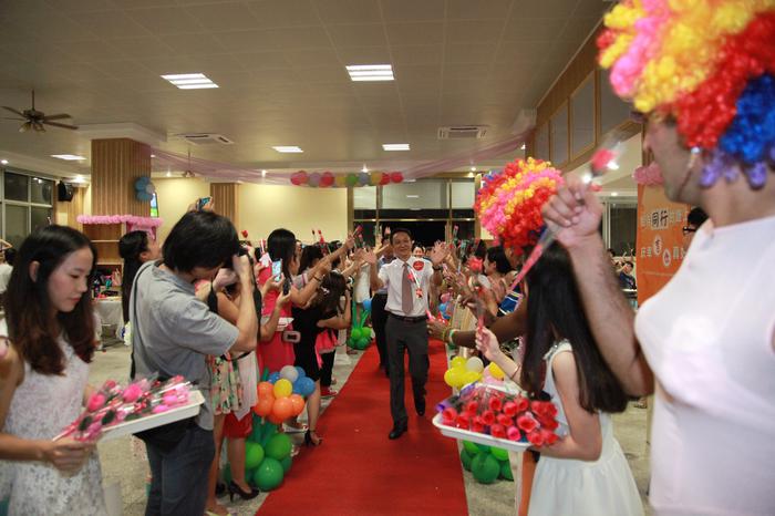 以“堅定尋夢之履,同賀幸福人生”為主題的第30次教師節慶祝活動在集團董事會的親自組織領導下,盛況空前,創意無限,充分顯現了尊尚師風,以師為本的管理理念。活動以各校園教師有序的“紅毯秀” 隆重拉開了序幕,用老師們的話說“今天當了一次明星,還有董事長和校領導親自鞠躬贈送鮮花,備受尊榮和感動”。當晚慶祝活動形式多樣,不拘一格,大家品著香檳、吃著點心,載歌載舞、笑語歡騰。特別是龍華中英文實驗幼兒園的外教男老師們的幽默反串,其花姿招展、故炫妖媚之態,為會場增添不少亮色,讓老師們歡笑不斷;龍華校高中美術教師趙海鵬,揮毫潑墨創作了8幅書法長匾,現場贈送給龍華校,陣陣翰墨書香飄蕩著遠恒佳人對學校的濃濃深情,讓人肅然起敬。還有其他校園帶來的充滿活力與激情的歌舞、充分彰顯了遠恒佳人的多才多藝、陽光與智慧。活動在各校園的歌手們自由點歌放歌中,在領導老師們的群舞歡騰中圓滿結束。