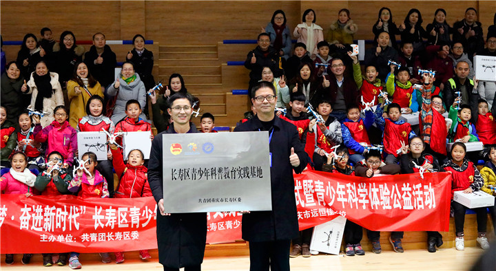 飛行體驗結束后,共青團重慶市長壽區委舉行了“長壽區青少年科普教育實踐基地”授牌儀式,王振權校長從團區委書記周劍手中接過了牌匾,全場師生家長見證了這個光榮的時刻。